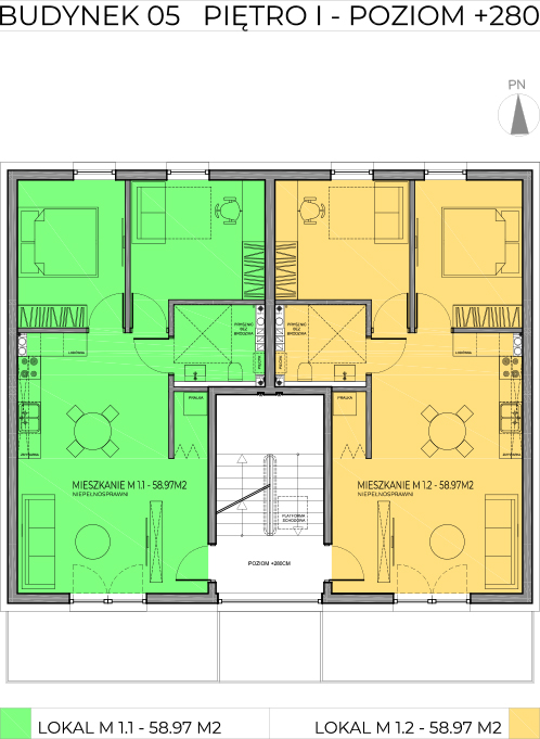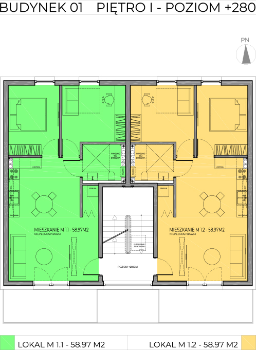 | M1.1 | 3 | 58,97 m2 | 9500zł/m2 | - | 9,18m2 | Piętro 1 | mieszkanie zarezerwowane | pobierz rzut |