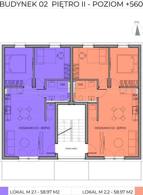 | M2.1 | 3 | 58,97 m2 | 9500zł/m2 | 560 215zł | 9,18m2 | Piętro 2 | wolne | pobierz rzut |